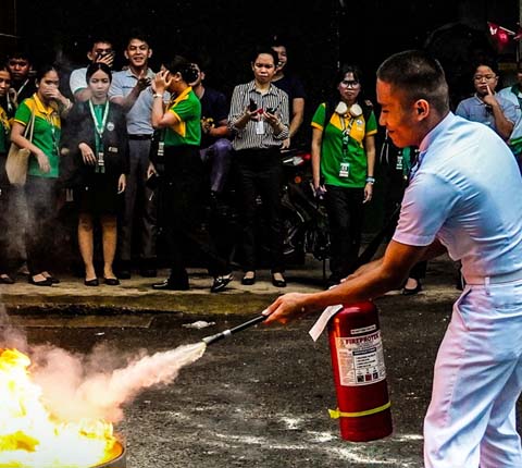 Fire officers Ralph Lynde Tabura, John Recar Estolonio, and Jerwin Almedilla led the session, sharing their expertise on proper fire response procedures. They provided valuable insights on what to do during a fire emergency and demonstrated the correct use of fire extinguishers.